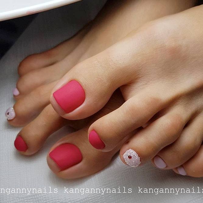Matte Pedicure renforce de plus en plus sa position de leader. Les nouvelles photos montrent différentes options pour combiner des textures brillantes et mates. La surface mate est de plus en plus utilisée pour appliquer des images et d’autres décors.