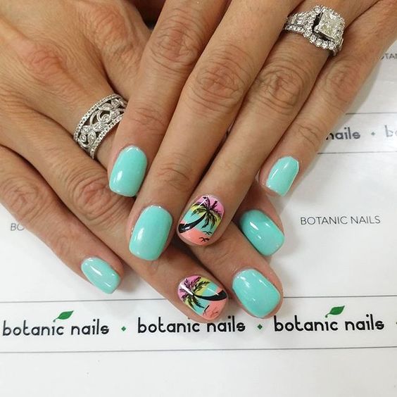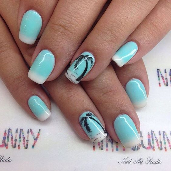 Lorsque vous vous rendez au centre de villégiature, vous souhaitez absolument souligner le fait que vous voyagez à l’avance. Par conséquent, la plupart des femmes choisissent une manucure de mer représentant l’image d’un palmier exotique sur un ou plusieurs clous. Chaque plante de manucure marine est individuelle. Il semblerait que le palmier ait l'air familier et qu'il n'ait rien d'inhabituel, mais sur les ongles, les maîtres du nail art le décrivent de manière unique et individuelle. Pas une seule manucure marine ne ressemble à un «clone». Chaque maître a sa propre vision pour une telle manucure et la paume elle-même. Et les teintes de vernis à ongles sont utilisées de différentes manières: jaune, vert, bleu, orange et même noir. Vous pouvez vous baser sur des exemples de photo de manucure marine, dans lesquels l'accent est principalement mis sur une plante tropicale.