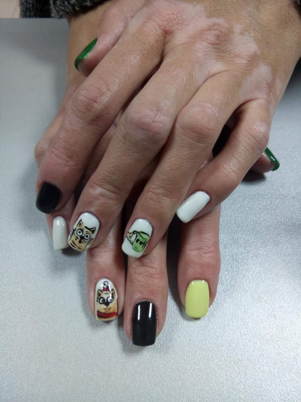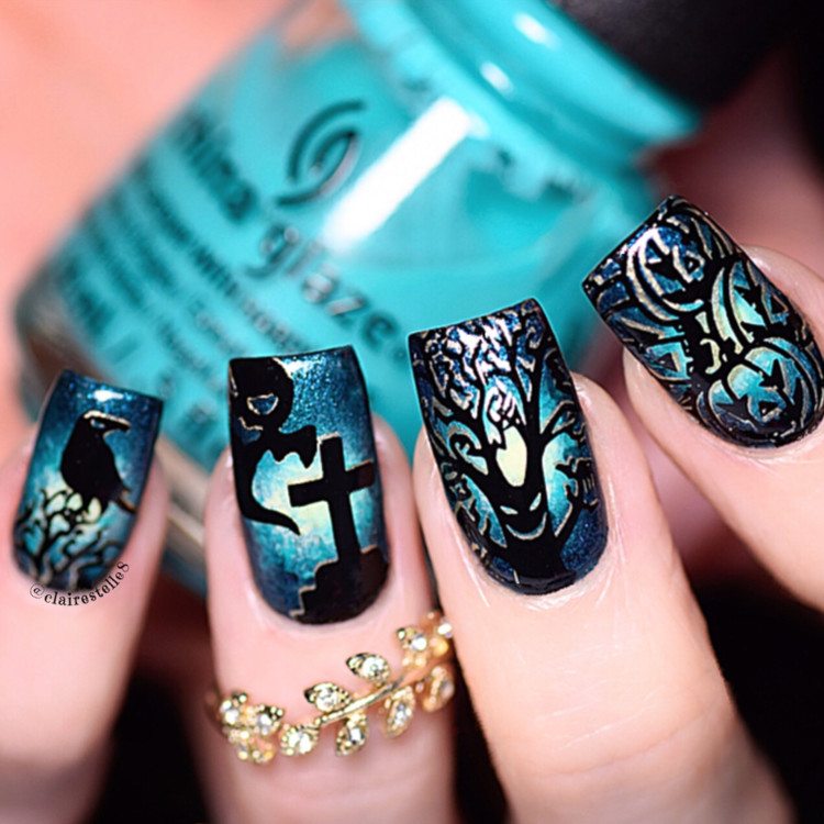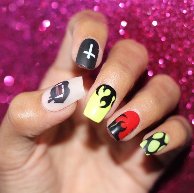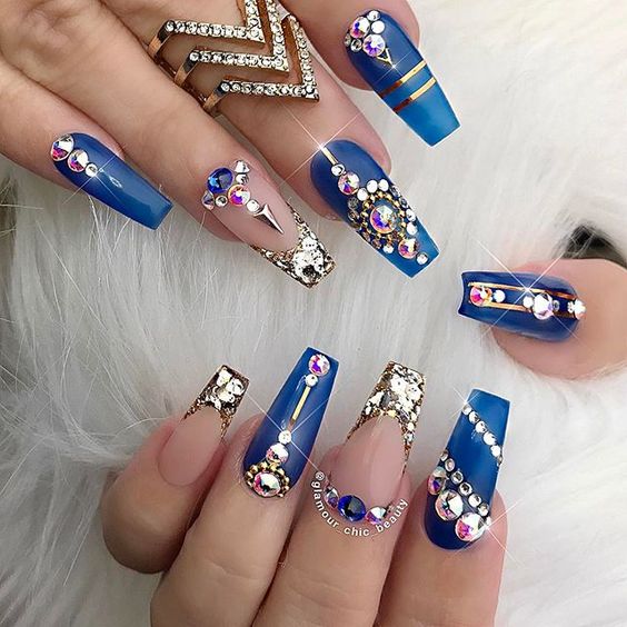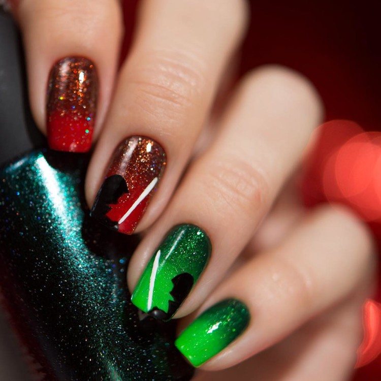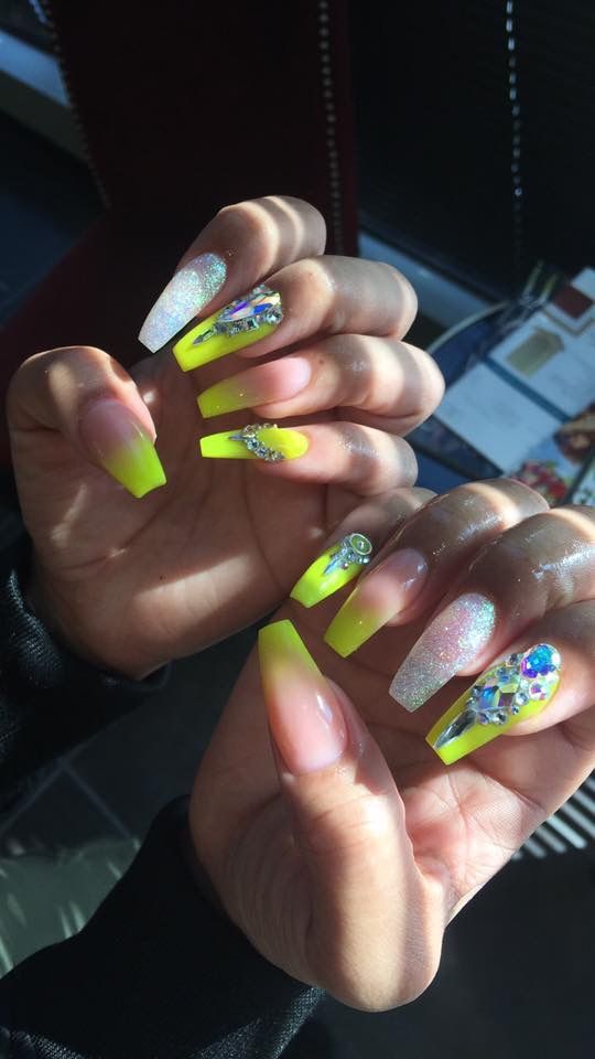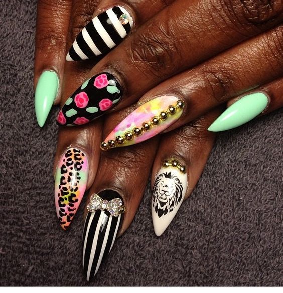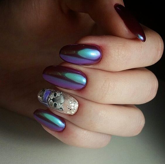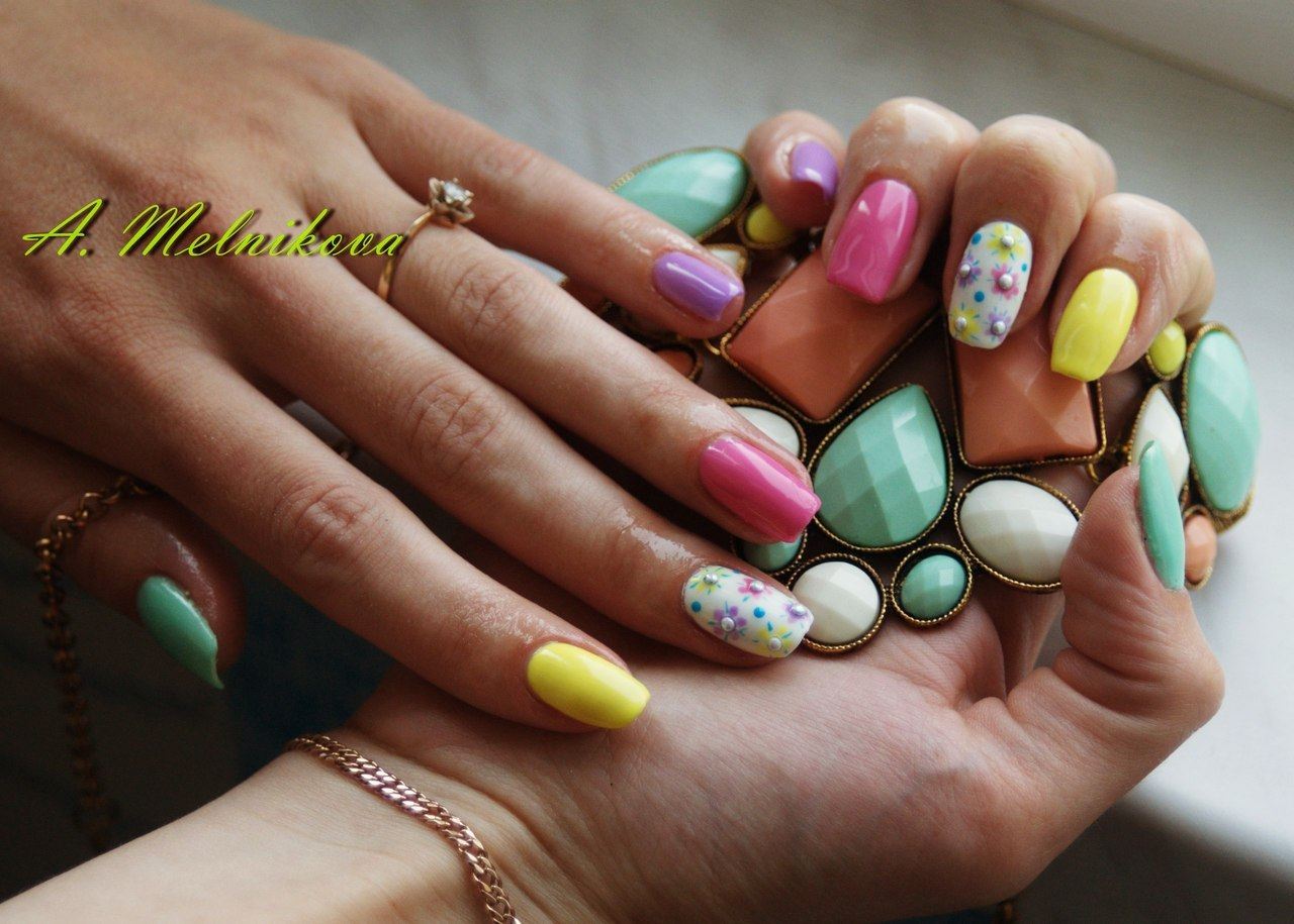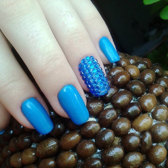 Voulez-vous être sur la même longueur d'onde que vos idoles? Alors les couleurs vives sont votre moyen de réussir! Vous pouvez actualiser n'importe quelle image à l'aide de clous verts et bleus. Bien sûr, cela ne correspond pas au style commercial, mais il est incroyablement intéressant pour les ongles longs et courts étendus.