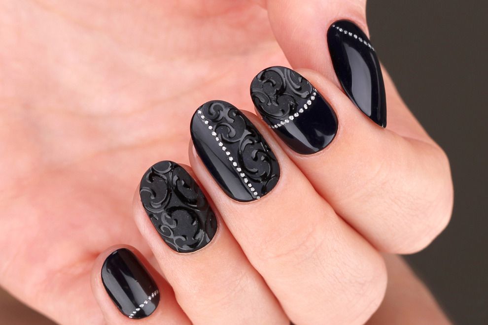 L'extrême dans la saison à venir ne signifie pas la longueur de l'ongle étendu, mais son revêtement. On peut créer un design créatif en recouvrant un ongle de figurines en pâte polymère, des pierres de Swarovski. La possibilité de couvrir avec les strass de tous les ongles développés est particulièrement extrême.
