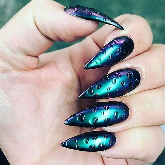 En utilisant des ongles étendus, vous pouvez changer radicalement votre forme naturelle et, si vous ajoutez une couleur vive à la correction, vous pouvez créer une image indescriptible.