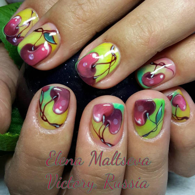Fruits aux couleurs des ongles allongés: cerises, fraises, framboises, grenades, raisins, prunes