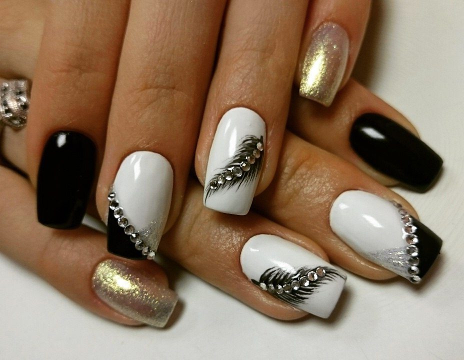 Pour les femmes motivées, la meilleure option pour le travail et les loisirs est une manucure sur des ongles longs dans une version blanche ou noire. Oui oui! C'est en noir! La couleur noire n’est plus considérée comme un enterrement dans le nail art et avec elle, des images élégantes sont créées. Eh bien, la couleur blanche du revêtement lors de la construction des ongles est destinée aux natures sophistiquées et romantiques.