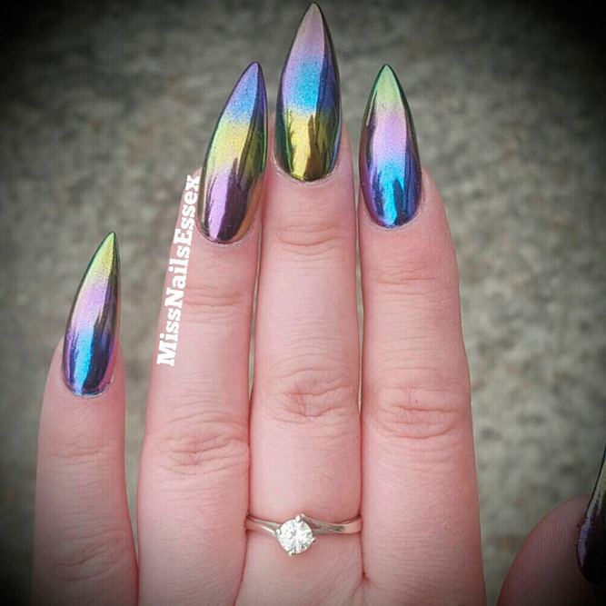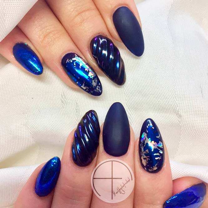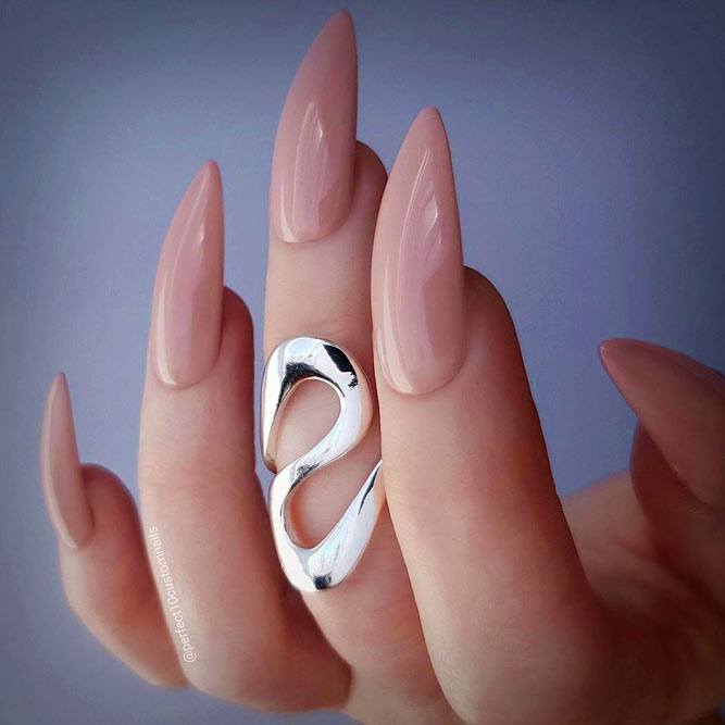 La forme en amande est une forme incroyablement féminine qui rend visuellement les doigts plus minces et plus élégants, mais il est préférable de choisir une telle forme pour les ongles courts ou ovales.