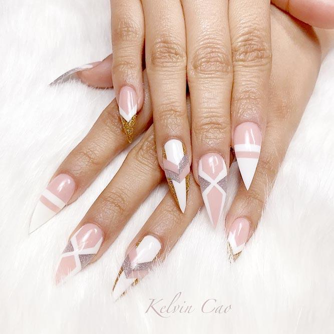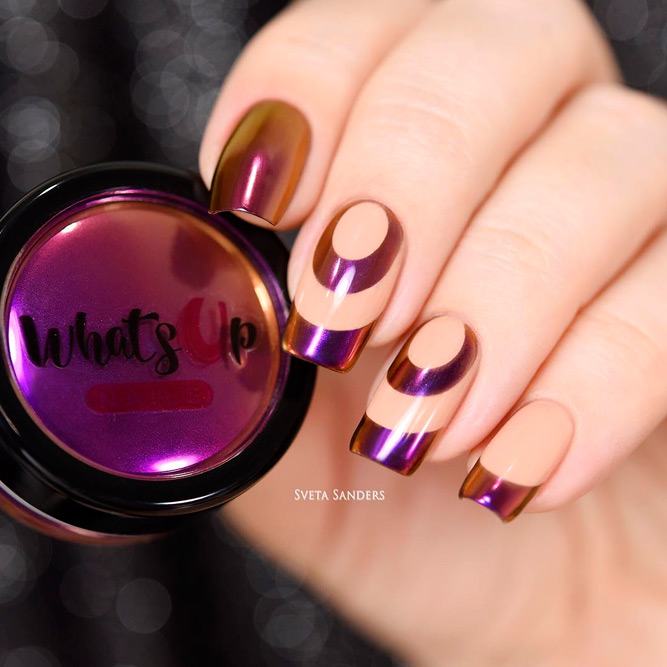 La veste intégrée est très féminine et élégante. Il ne doit pas nécessairement être joué dans un ton blanc traditionnel. Une excellente option est de décorer avec une autre couleur ou même brillant. Bien sûr, la version classique la plus commune de la manucure française, mais les maîtres recommandent aux filles d'être détendues et de mettre en œuvre des idées plus audacieuses, de mettre davantage l'accent et de décider de mesures audacieuses plus proches des tendances de la mode.