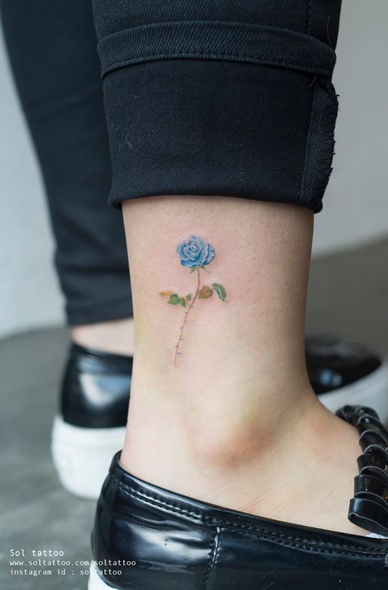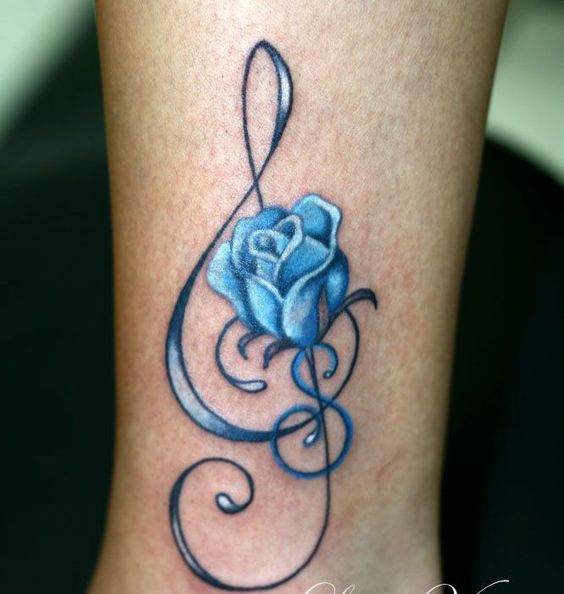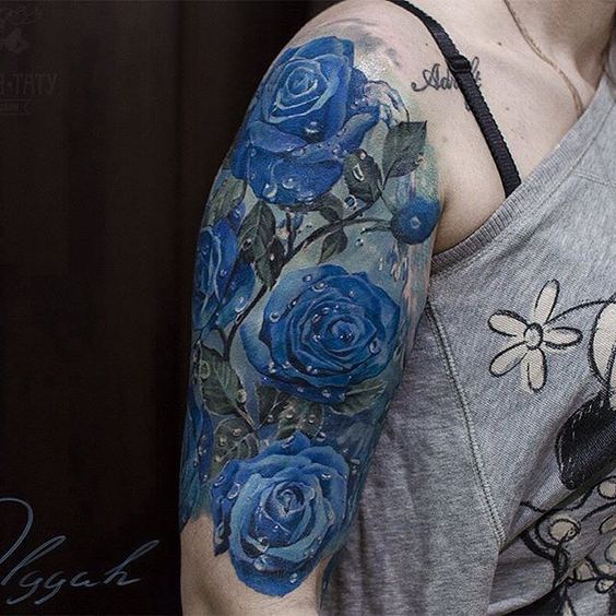 Choisir un beau tatouage de rose n'est pas si simple. Tout d'abord, vous devez trouver un spécialiste approprié. Deuxièmement, choisissez l'option que vous voulez. Menez leur masse! Envie d'exotisme sur votre corps? Sélectionnez une rose bleue comme empreinte de votre corps. Un tatouage de rose dans les tons bleus crée un contraste spectaculaire. En réalité naturelle, il n’existe pas de roses bleues, mais une technologie de coloration. C'est pourquoi le tatouage de rose bleue sur le corps de la femme semble mystique et mystérieux. Beaucoup de femmes tentent de combiner les nuances de bleu avec d'autres couleurs. De telles compositions semblent très intéressantes. Mais créer un dessin unique sur le corps n’est possible que si le maître sait combiner correctement les tons bleus.