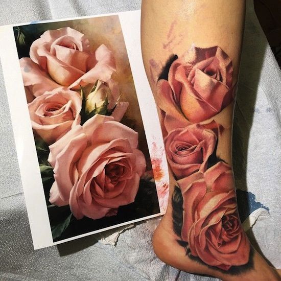 Pourquoi les femmes aiment les roses? Pour leur longue floraison et leur riche palette de couleurs. En outre, ces plantes se plaisent avec de belles fleurs, même en hiver. Alors, pourquoi ne pas utiliser cette fleur royale comme image dans un camp féminin? Le tatouage floral met l'accent sur la féminité et les roses peintes symbolisent la tendresse et l'amour passionné.