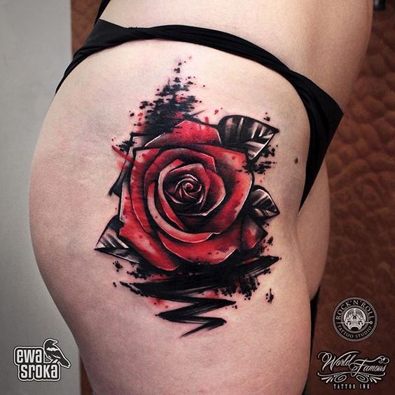 Les spécialistes de la sous-culture carcérale décryptent le sens d'une rose sur la cuisse avec le fil d'un prisonnier comme ayant une orientation non conventionnelle et ne recommandent pas aux femmes d'utiliser des esquisses criminelles. Ce sujet n'est pas à la mode et n'est pas acceptable pour les femmes modernes, douces et romantiques. La couleur de la rose sur le corps a aussi une certaine signification: blanc - innocence, rose - gratitude, rouge - amour passionné, bleu - détermination, noir - tristesse. Les femmes préfèrent la plupart du temps choisir un tatouage rose avec une couleur rose tendre qui met en valeur la nature romantique.