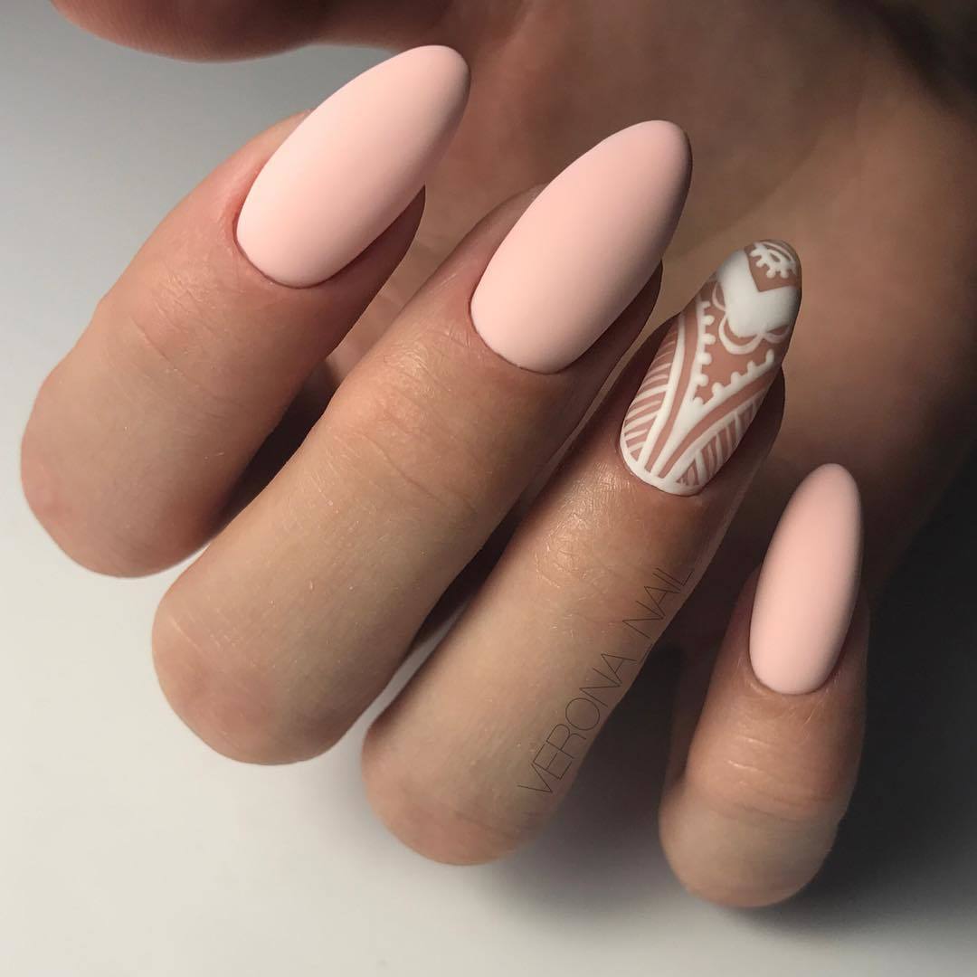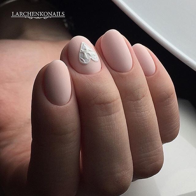Matte Manicure Nude est une excellente beauté douce et féminine de vos mains. La manucure nue mate a fière allure dans une version monophonique. Mais si vous décidez d'ajouter un strass, mais seulement un peu, vous obtiendrez une très belle et attrayante manucure. En outre, la base mate peut être diluée avec des motifs délicats et non accrocheurs. Il est très important de savoir que la manucure matte light est très sale. Les propriétaires de cette manucure doivent donc faire preuve de plus de prudence.