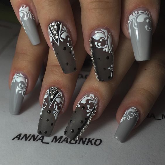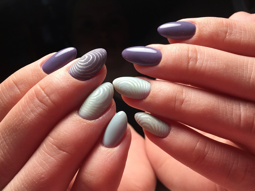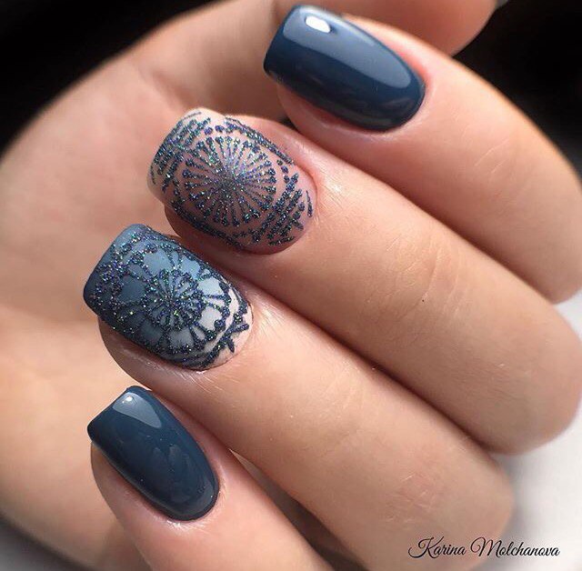 Si les dessins et les motifs n'impressionnent pas les fashionistas, il est préférable de faire attention aux autres techniques de manucure plus appropriées, qui permettront un regard complètement différent sur le style des ongles lorsque les vents forts sont glaciaux à l'extérieur de la fenêtre. Faites attention à l'exécution inhabituelle de la conception géométrique et lunaire. Les images abstraites et ajourées sont parfaites pour la saison d'hiver. Et les ongles avec le décor en forme de perles ou de floc sembleront très élégants et stylés, même en combinaison avec une manière laconique.