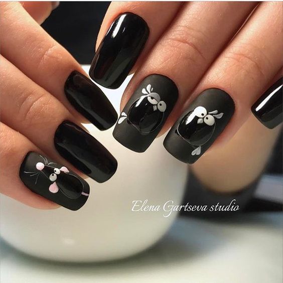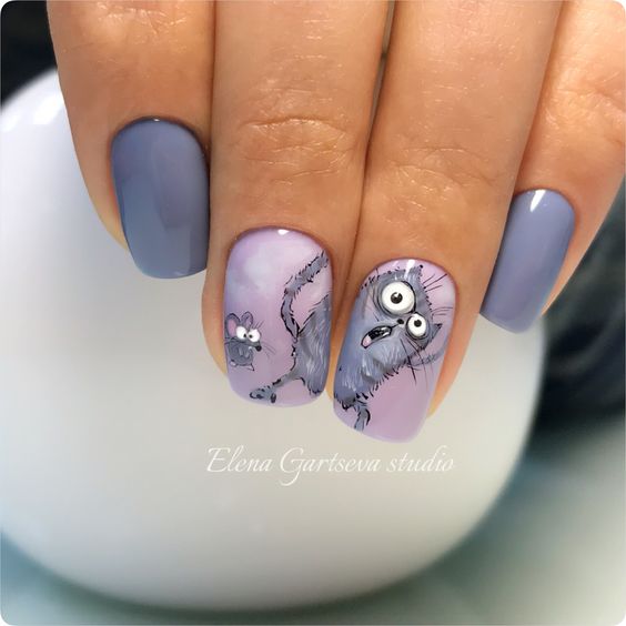 Les beaux soucis courts restent populaires cet hiver. Qui a dit que sur les ongles courts, il fallait être limité lors du choix d'une manucure? Même sur les ongles les plus courts, vous pouvez créer une manucure incroyable à couper le souffle, l’essentiel est de laisser libre cours à votre imagination. Vous pouvez appliquer différentes couleurs, motifs, ornements, brillants et autocollants.