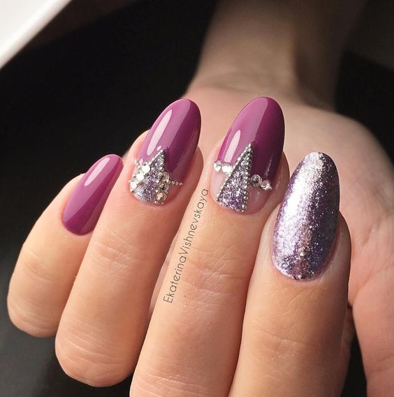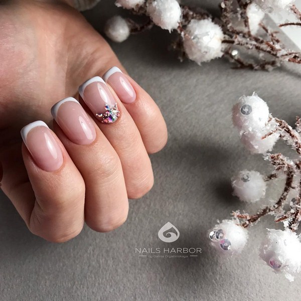 Quand d'autre, sinon en hiver, laisser libre cours à des étincelles et des paillettes pour créer une manucure inégalée? Ils se marient parfaitement avec les nuances sombres et nues, en particulier avec le beige, le noir, le bordeaux, le bordeaux, le rose tendre et le bleu. Une manucure d'hiver brillante à la mode fera bonne figure sur les ongles longs et courts. En ce qui concerne la conception de la manucure elle-même, ses paillettes et ses étincelles s’allient bien à la manucure française, à la conception mate et sur une base simple.