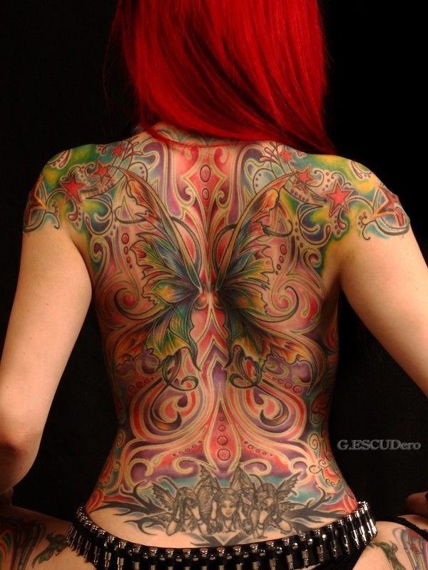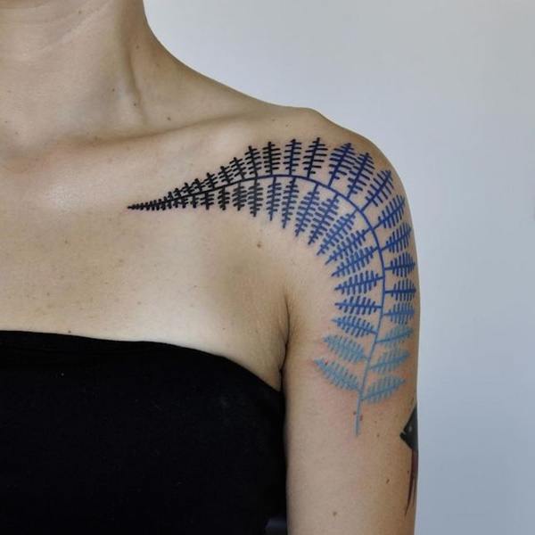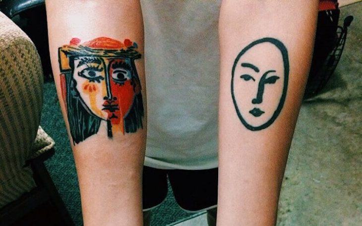 Un tel tatouage peut être fait à la fois en couleur unie et en utilisant des couleurs vives.