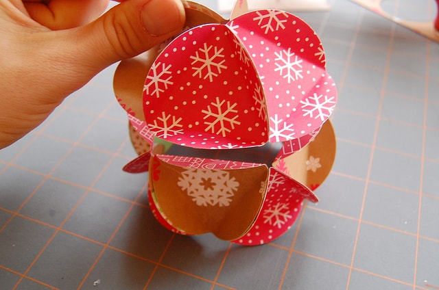 Nous collons la première et la dernière pièce ensemble. Cette conception sera la partie centrale du jouet d'arbre de Noël.