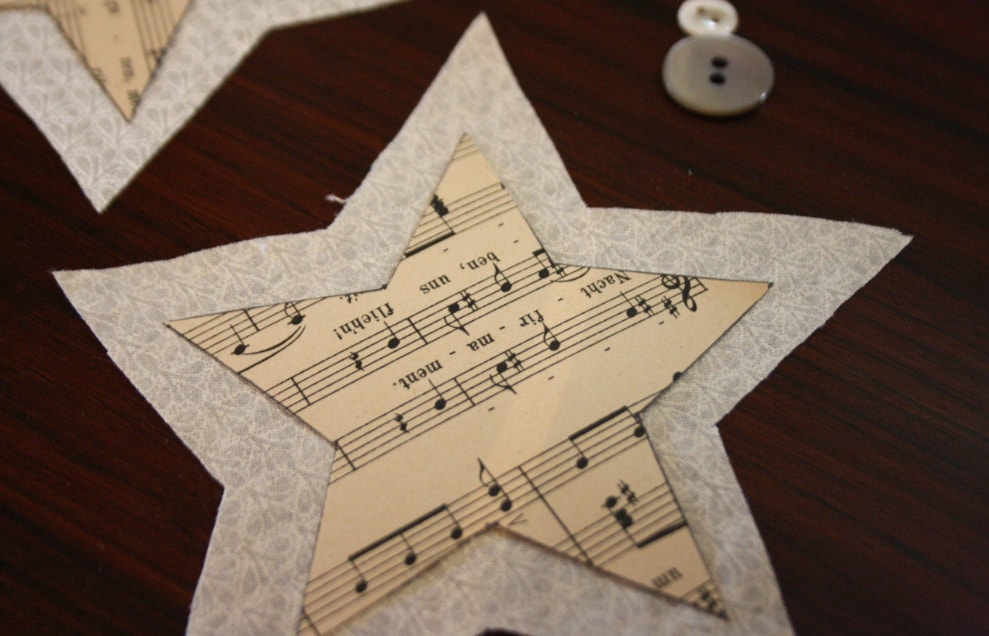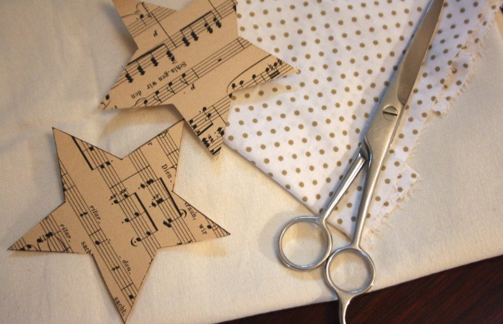 Nous posons un pochoir sur le tissu et dessinons une étoile, un centimètre ou un demi de plus de chaque côté. Découpez soigneusement la pièce. N'oubliez pas que pour un jouet, vous aurez besoin de deux flans en tissu et de deux en papier.