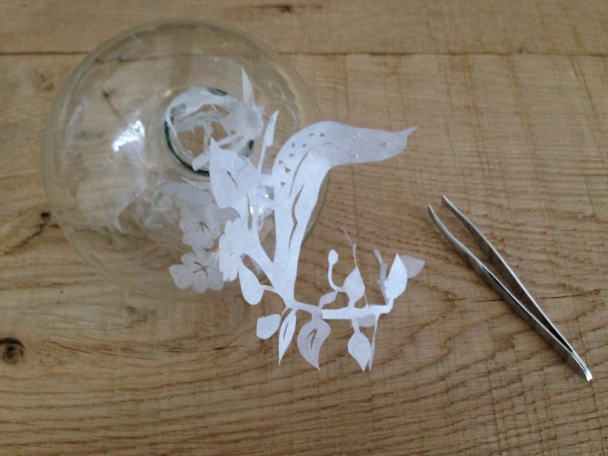 À l'aide de pincettes, placez l'image à l'intérieur du ballon. Si vous le souhaitez, vous pouvez réparer le haut.