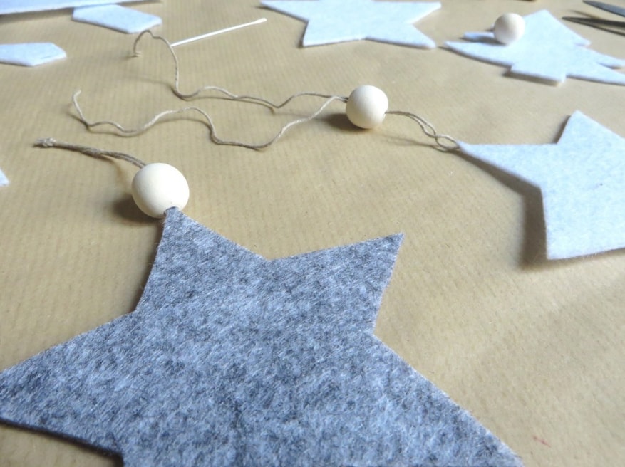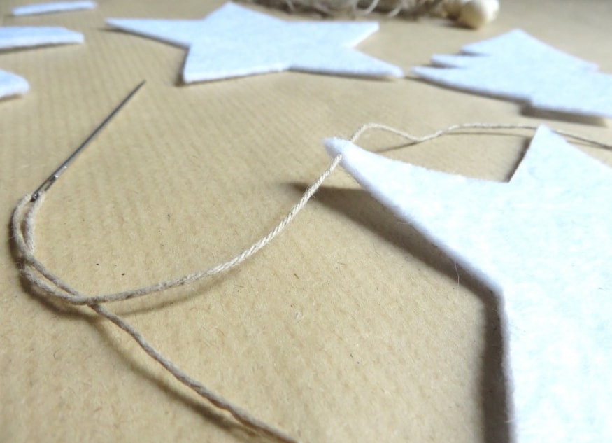 À la base de l'étoile, nous enfilons une aiguille avec un fil.
