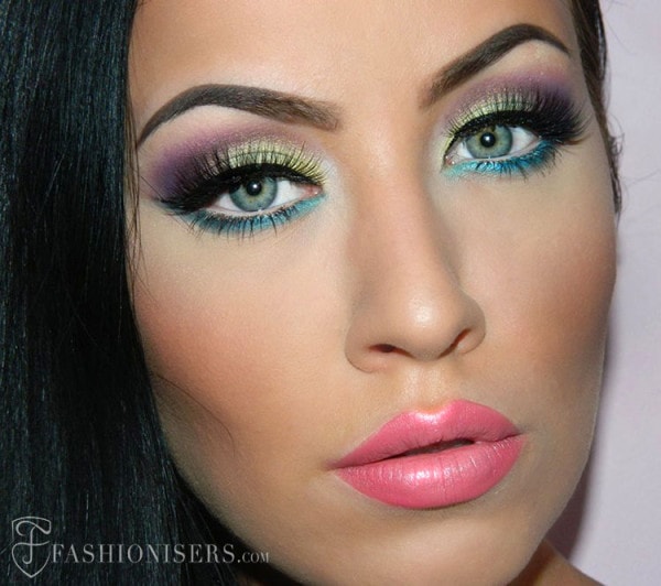 Pour ceux qui aiment les couleurs vives, nous vous recommandons d'essayer de maquiller en utilisant plusieurs couleurs vives. Il a l'air très impressionnant et moderne, mais sa création nécessite de l'expérience.