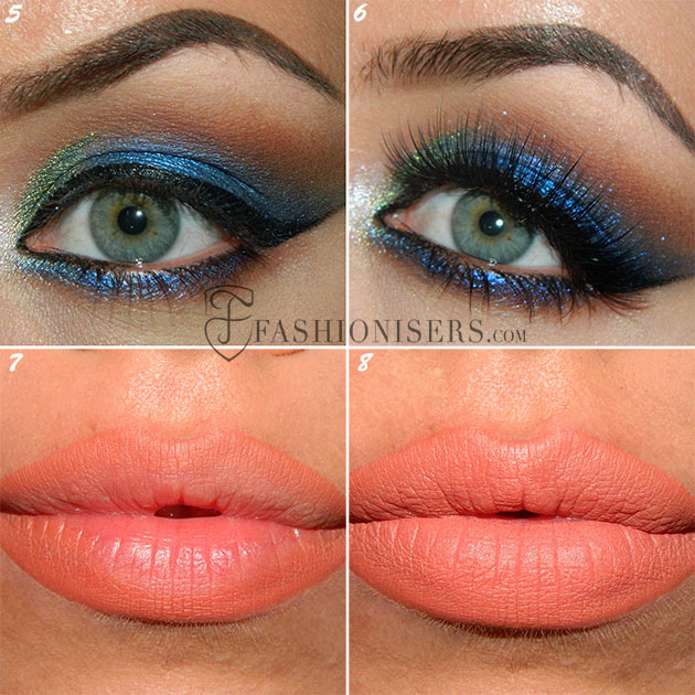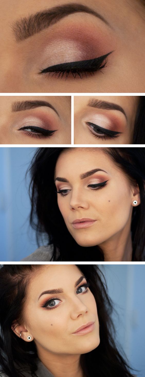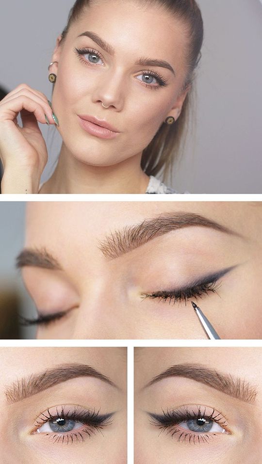En ce qui concerne les ombres, des teintes claires et neutres sont souvent utilisées. Si vous le souhaitez, vous pouvez tracer des flèches lumineuses légèrement. Un mascara noir de haute qualité aidera à souligner les yeux. Si vous aimez expérimenter, essayez également les options de couleur.