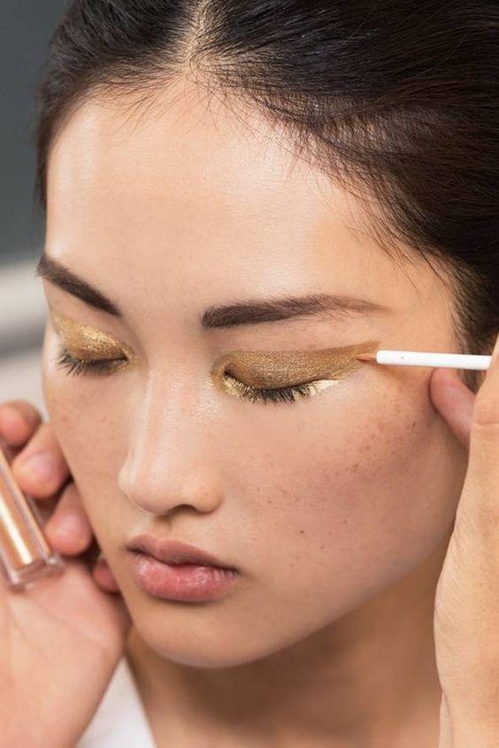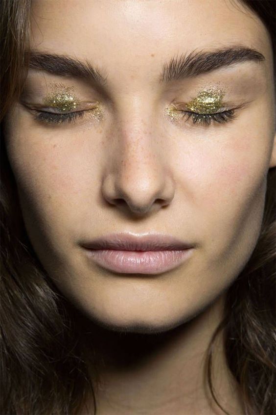 Les sourcils couverts d'étincelles dorées semblent assez originaux. Pour créer un maquillage vraiment tendance, vous pouvez même faire un relooking d'or. Pour cela, il est plus pratique d’utiliser des paillettes, des crayons ou des ombres. D'accord, une solution originale pour le nouvel an.