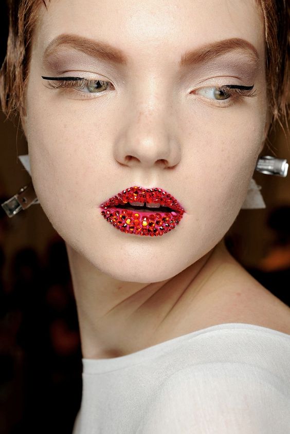 Pour une séance photo, vous pouvez même coller des paillettes sur vos lèvres. Croyez-moi, toute votre attention sera portée sur votre maquillage.