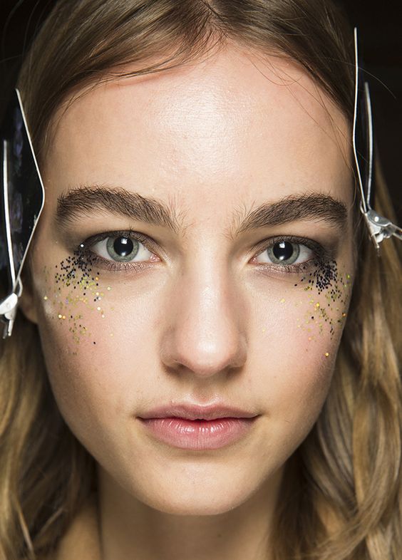 Comme mentionné ci-dessus, lors d'une nuit de vacances attendue, vous pouvez faire des essais de maquillage. Par exemple, utilisez des étincelles et des strass. Pour ceux qui souhaitent faire quelque chose d'inhabituel, nous suggérons de souligner les pommettes avec un éclat métallique. Les strass peuvent également être collés aux pommettes, aux sourcils ou aux yeux.