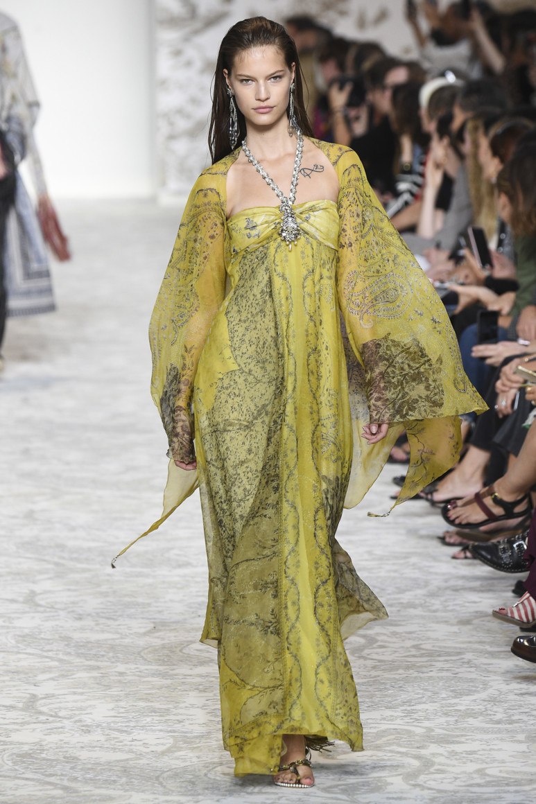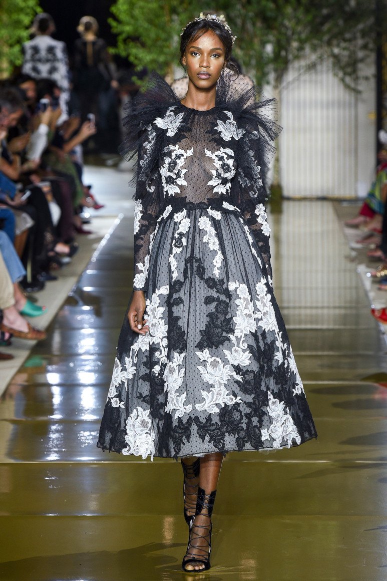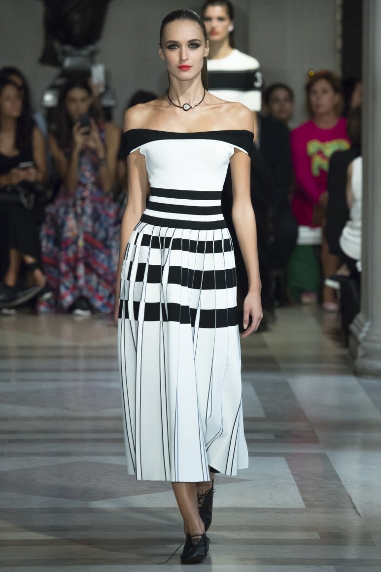Dans les nouvelles collections de robes de soirée, des modèles avec un bel ornement, loin du thème du Nouvel An, ont trouvé leur place. Le motif prédominant sur les robes est floral. Nous voyons de tels modèles dans les collections de NAEEM KHAN et ROCHAS. La marque VERSACE s’appuie sur des motifs ethniques jaunes et la marque de mode ETRO sur des robes jaunes. En passant, le jaune est la couleur de la prochaine 2026. C'est pourquoi les stylistes ont décidé de proposer des robes originales dans toutes les variations de la nuance jaune. La marque "MOSCHINO" a introduit des modèles funky de robes qui créent l'effet d'un papillon. PASKAL dans sa collection offre une version du soir de la robe à pois métalliques et un style sportif. De plus, «DAVID KOMA» et «CAROLINA HERRERA» ont présenté aux femmes à la mode des robes de Nouvel An en noir et blanc avec un imprimé à carreaux et à rayures classique.