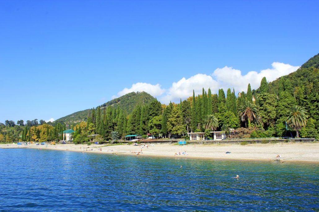 Dans la partie centrale de la station il y a de petites plages de galets. Dans la partie orientale, il y en a de sable. Le fond à l'entrée de l'eau est plat et la descente est confortable. Par rapport aux autres stations balnéaires d’Abkhazie, il y a relativement peu de monde sur les plages de New Athos.