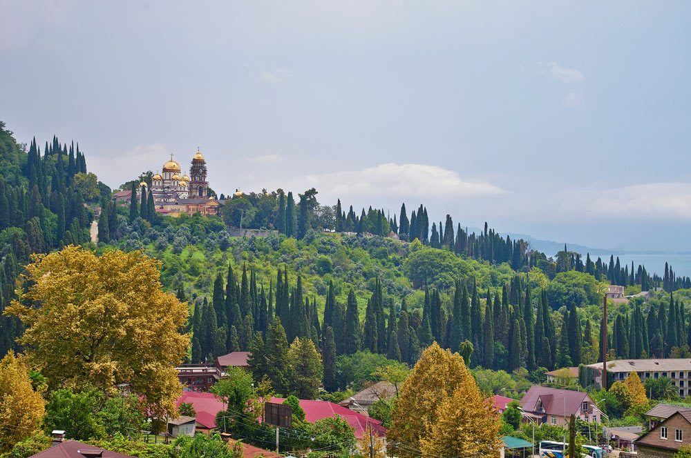 Il y a beaucoup d'endroits intéressants dans le village de villégiature. Le nouveau monastère d'Athos est l'un des plus intéressants. Il a été construit par les moines pendant 12 ans à partir de 1875. Après de nombreuses années de travail acharné, le monastère fut construit en 1896. Alexandre III en 1888 a même participé à sa construction. Pour la plus haute tour, il a présenté des carillons. Une particule de l'arbre de la croix vivifiante du Seigneur est le sanctuaire principal de cet endroit. Dans ce monastère, il y avait des usines de fonderie, de chaussure, de montre, de couture, de reliure, de crémerie, de briques et de bougies. En 1924, il fut complètement fermé et ce n’est qu’après 70 ans que la renaissance du sanctuaire commença.