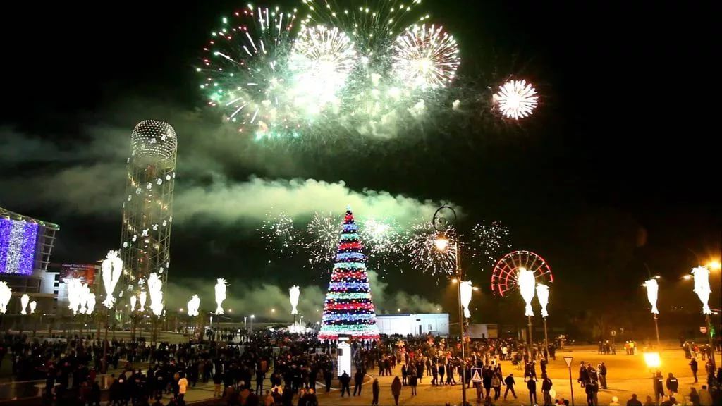 À la veille du Nouvel An, les ventes se déroulent dans les centres commerciaux de Tbilissi et de très belles illuminations sont visibles dans les rues. Le 31 décembre, les festivités commencent. La place de la Liberté et le parc Mtatsminda regorgent de résidents et de visiteurs.