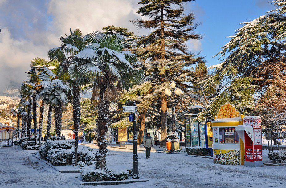 Yalta à la veille du Nouvel An est littéralement transformée au-delà de toute reconnaissance. Un arbre de Noël de fête est en train d’être installé sur le quai, un concert est organisé et, bien sûr, un feu d’artifice. De plus, les "fontaines dansantes" ne peuvent laisser indifférent même le plus strict des touristes.