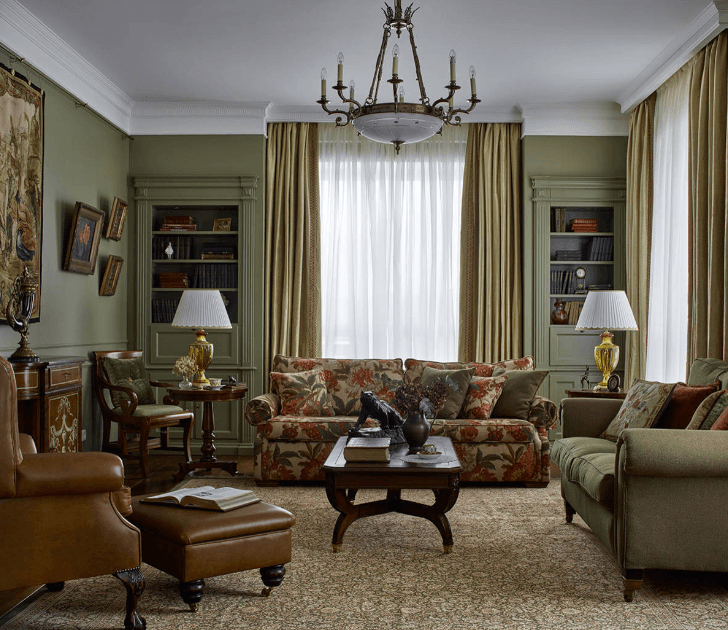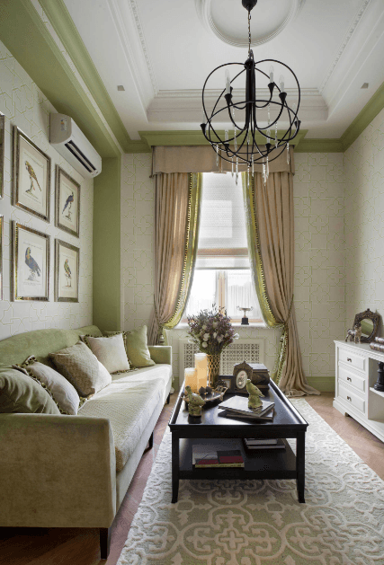 Parmi les nuances les plus pertinentes de 2026 sera le vert. C’est lui qui rappelle en quelque sorte le respect de l’environnement; il est donc souvent choisi pour la conception du salon.En ce qui concerne le papier peint, nous vous recommandons de regarder la nuance de vert pastel ou sourdine. Le fait est qu’ils auront l’air plus sobre, mais en même temps doux. Par conséquent, si vous le souhaitez, vous pouvez créer une version combinée du papier peint en vert et en blanc ou en beige.