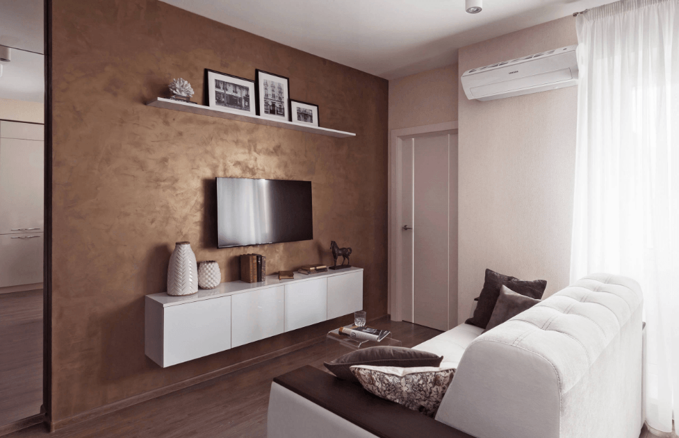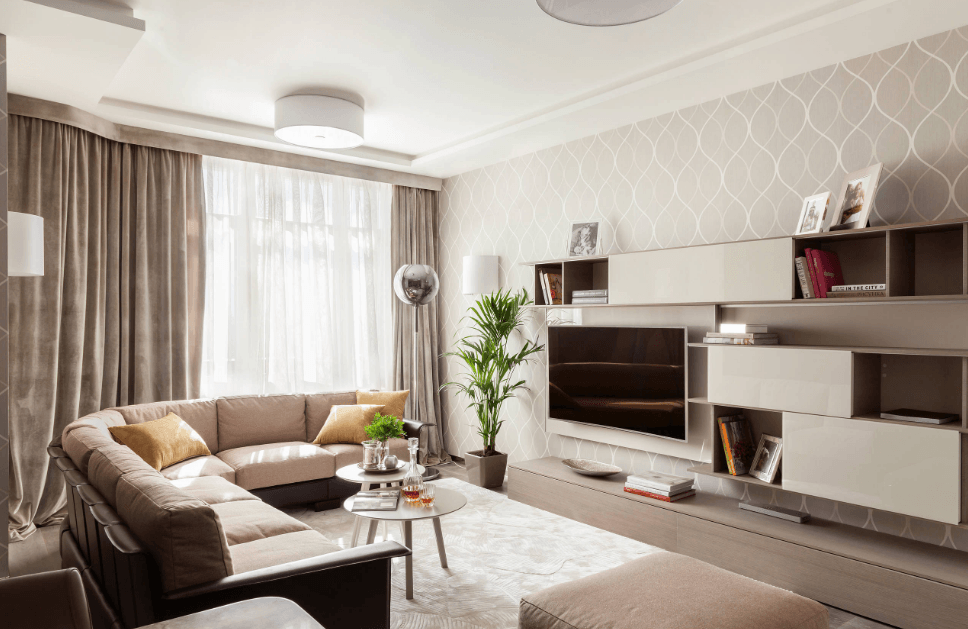 Peut-être que le plus universel de tous les temps sera la couleur beige du papier peint. Cela n’est pas surprenant, car les couleurs chaudes créent toujours une atmosphère particulière de confort, de douceur et de chaleur familiale. Mais c’est exactement ce que vous devez faire pour décorer le salon.