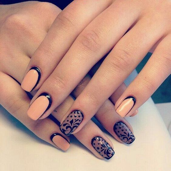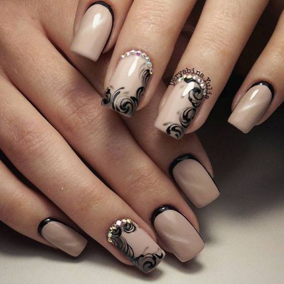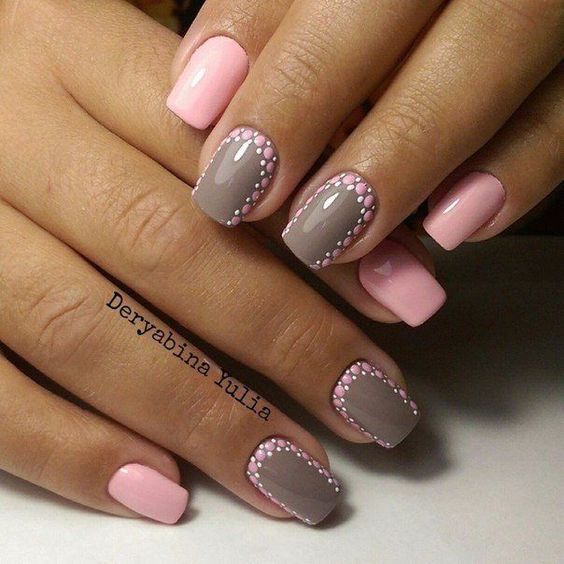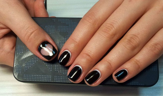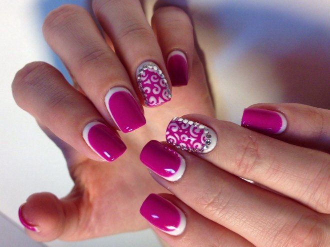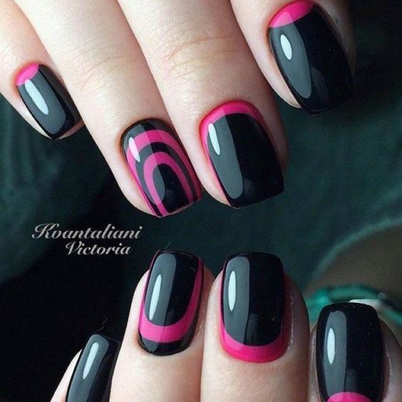 Dans la version classique de la veste inversée, le rose est supposé être utilisé comme couleur de base. La deuxième couleur dépend du personnage que vous souhaitez définir pour une manucure. Choisissez le blanc si vous préférez la légèreté, mais en même temps la retenue. À son tour, le noir rendra le dessin un peu plus rigoureux en raison du contraste.