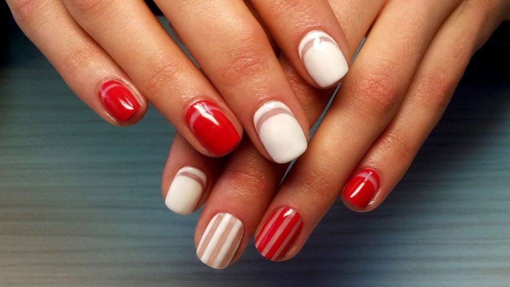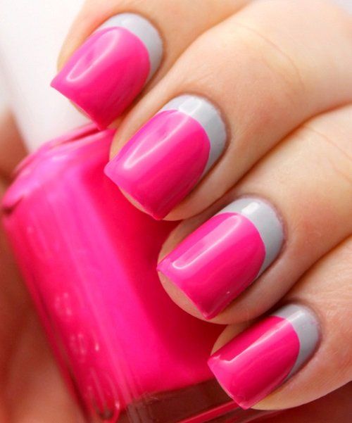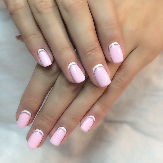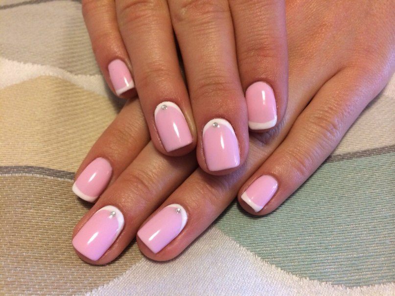 Ensuite, vous devez dégraisser la plaque à ongles et appliquer la couche principale de vernis. Dans la version classique, le rose est le plus souvent choisi. Si vous utilisez des gels lustrants, veillez à bien sécher les ongles de la lampe. Après cette étape, appliquez une couleur contrastante sur le bord de l'ongle. Si nécessaire, vous pouvez utiliser un pochoir ou le fabriquer vous-même avec du ruban adhésif. Lorsque la deuxième couche est sèche, appliquez une couche de finition et assurez-vous de la sécher dans la lampe. Ceux qui utilisent des vernis simples n'ont pas besoin de faire le dernier pas.