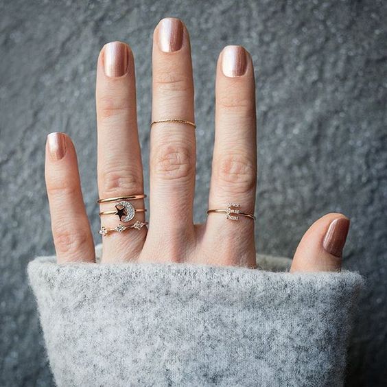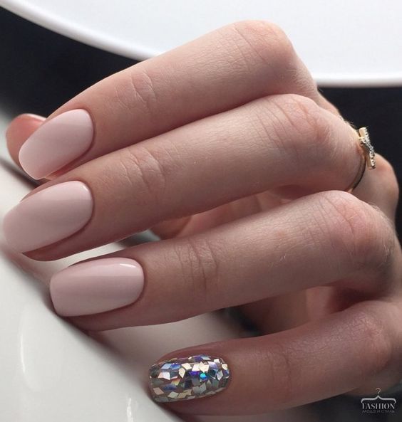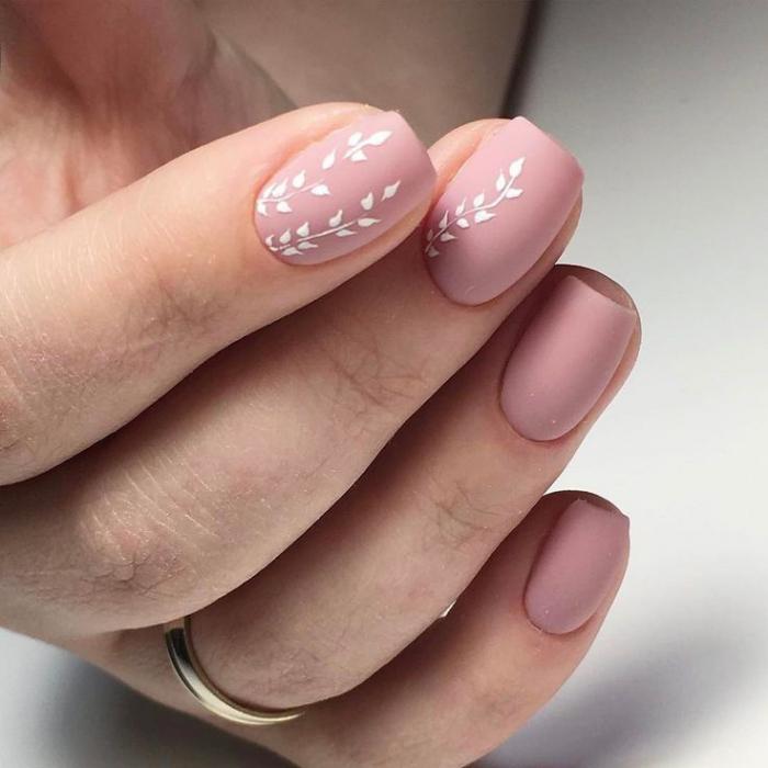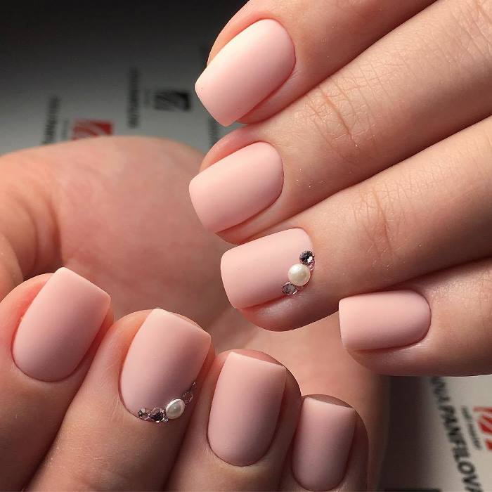 Séparément, il convient de noter une manucure nue. Ce sera toujours pertinent, peu importe la période de l'année. Des nuances telles que poudré, beige ou chair sont préférables. Ils se remarquent à peine sur les ongles, ils sont donc parfaits même pour les journées de travail au bureau. Mais si cette option est trop ennuyeuse pour vous, nous vous recommandons d’ajouter un accent. Par exemple, un petit dessin, une inscription ou un décor supplémentaire.