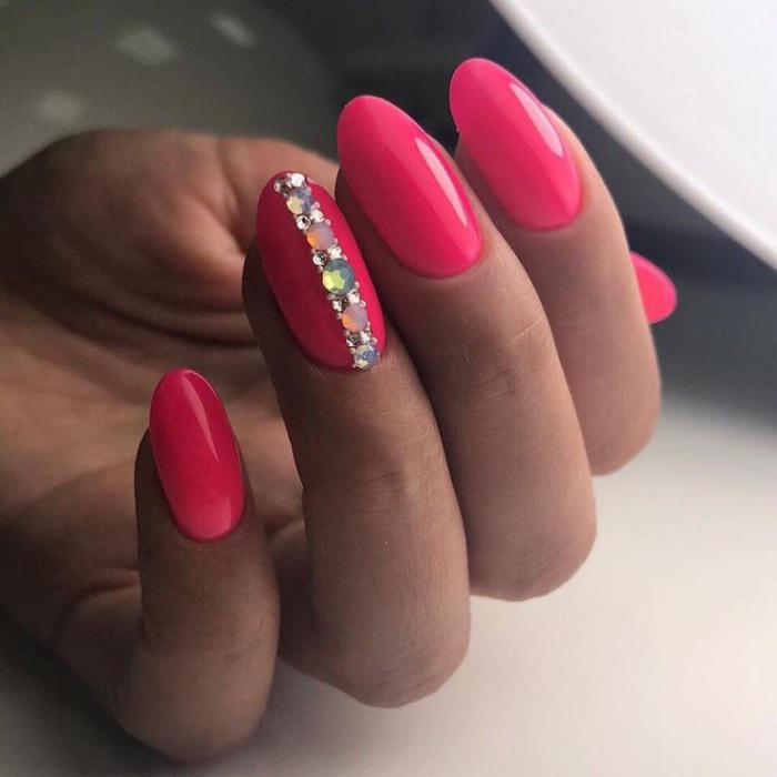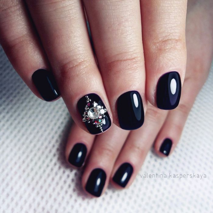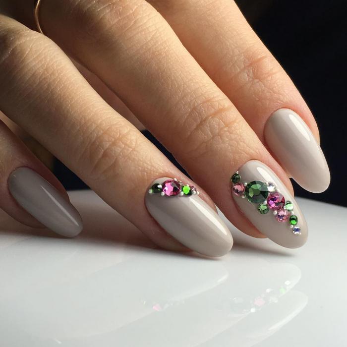 Peut-être que l'option de décoration des ongles la plus populaire est les strass. Avec leur aide, vous pouvez réaliser n'importe quel fantasme et transformer même la manucure la plus simple. Surtout compte tenu du fait qu'il existe une grande variété de strass dans la forme et la couleur. Ils peuvent être combinés les uns aux autres, constituer des dessins entiers ou utiliser plusieurs éléments comme accent. Une manucure semble très intéressante si vous placez une bande verticale ou horizontale de strass sur un ou deux ongles. C'est cette option qui a été particulièrement populaire ces derniers temps.