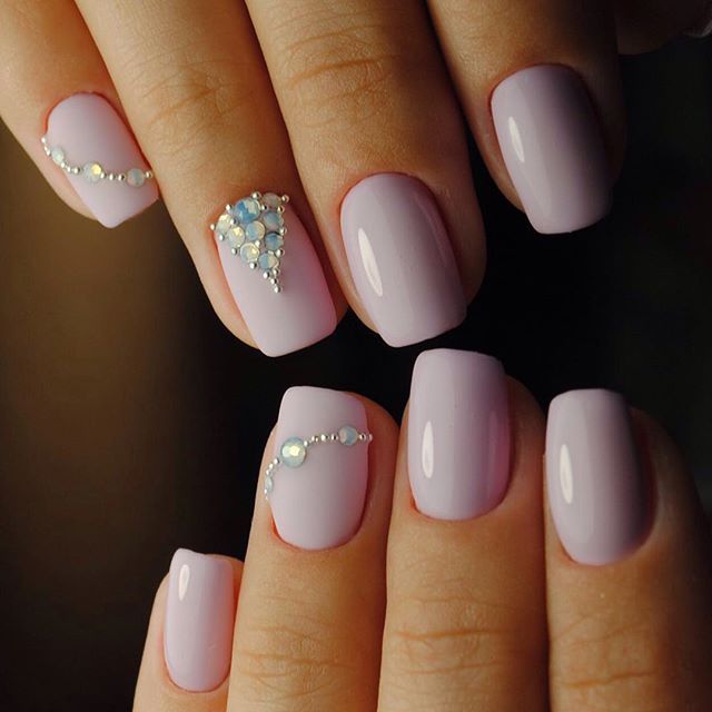 Pour la saison printemps-été, les couleurs claires ou même vives conviennent mieux. Les couleurs grise, rose, blanche, bleue et pêche sont idéales comme revêtement monophonique. Si vous le souhaitez, ils peuvent être complétés par des brillants, des strass ou des perles. Tout cela sera approprié, mais pas en trop grande quantité.