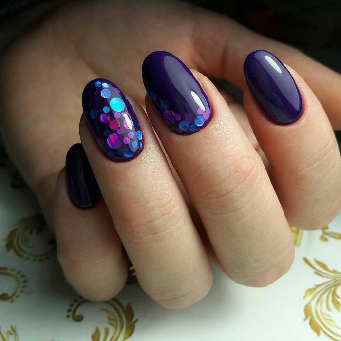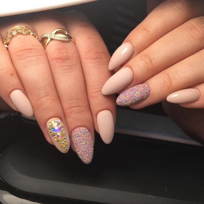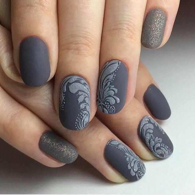 Si vous le souhaitez, vous pouvez vous concentrer sur la texture. Autrement dit, utilisez non seulement une finition brillante, mais aussi une finition mate. Il ne semble pas moins attrayant. En outre, une combinaison d'une finition brillante et mate dans une manucure serait une excellente idée. Quant au décor supplémentaire, il devrait être utilisé en petites quantités sur un ou deux clous.