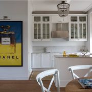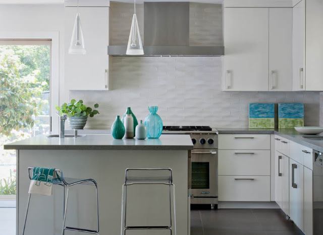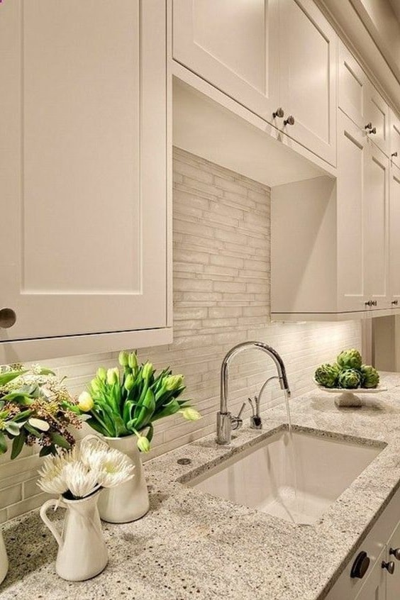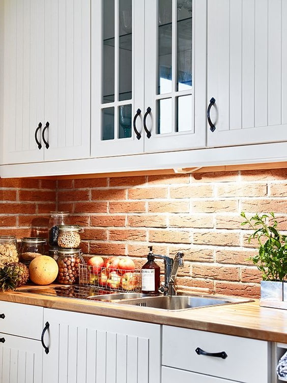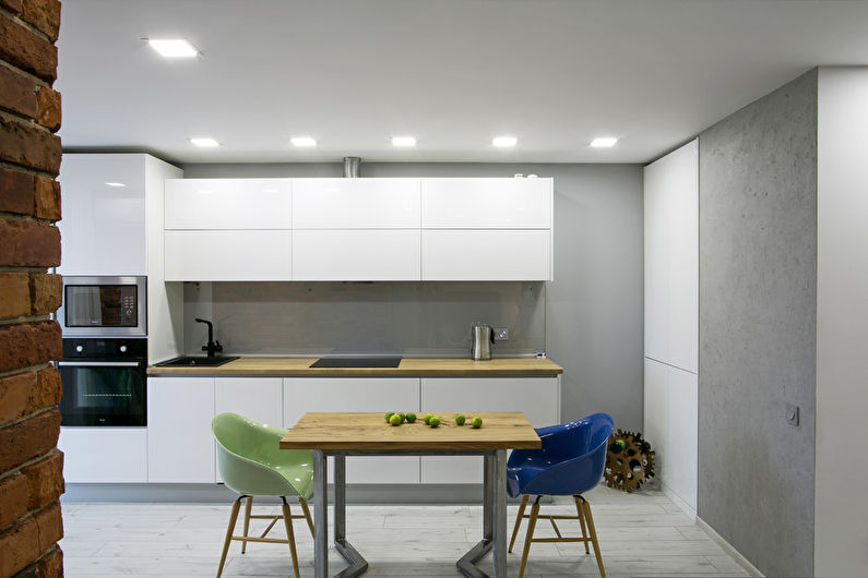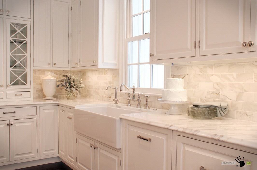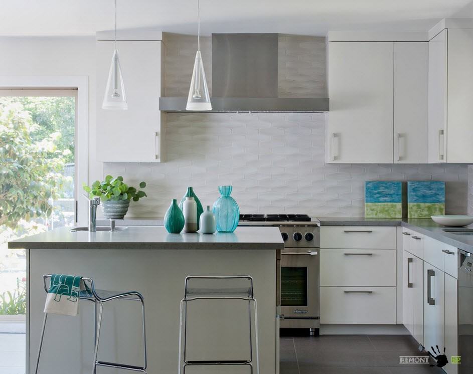 Si vous avez choisi un revêtement brillant, vous devez être prêt pour le nettoyage continu du tablier, car même un peu de pollution sur un tel fond attirera l’attention. Les tabliers de cuisine les plus appropriés sont les tons neutres. Un point fort dans ce cas peut être la texture du revêtement.