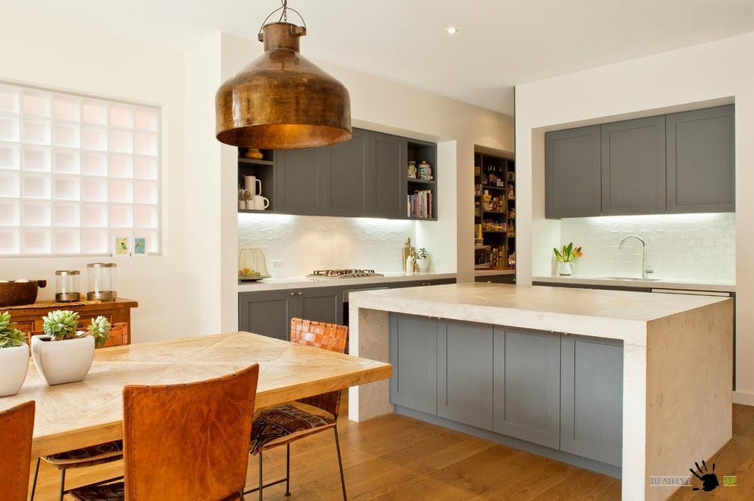Un tablier de cuisine est appelé la partie du mur qui se trouve dans la zone de travail entre les armoires murales et murales. Étant donné que cette surface est très sensible à la contamination, des exigences très strictes sont imposées aux matériaux utilisés pour la finition.