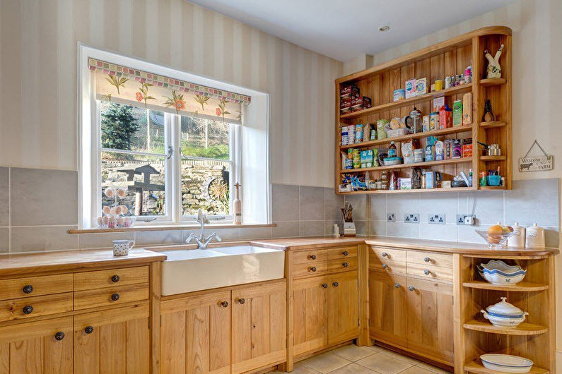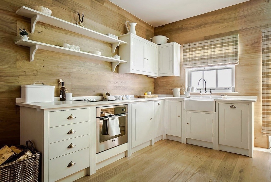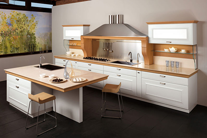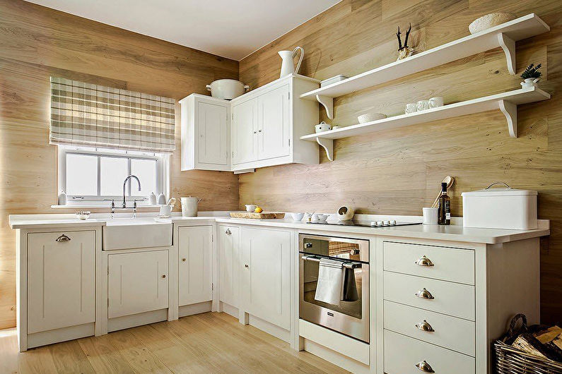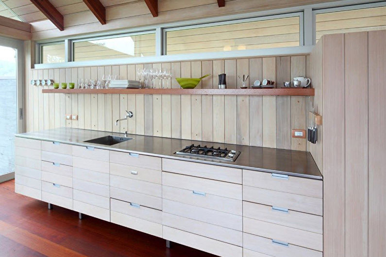 De tels modèles ne peuvent pas être considérés comme une option idéale pour la cuisine, car le matériau lui-même est capable d'absorber la saleté, les odeurs et l'humidité. Cependant, pour certains, la convivialité environnementale du bois devient un élément essentiel de la conception d'une cuisine. Dans ce cas, le revêtement doit être prétraité avec des huiles et des vernis spéciaux. Un tablier en bois peut faire partie de n'importe quel style. Il peut être combiné avec d'autres éléments de la cuisine. Les tabliers en MDF sont une option plus abordable.
