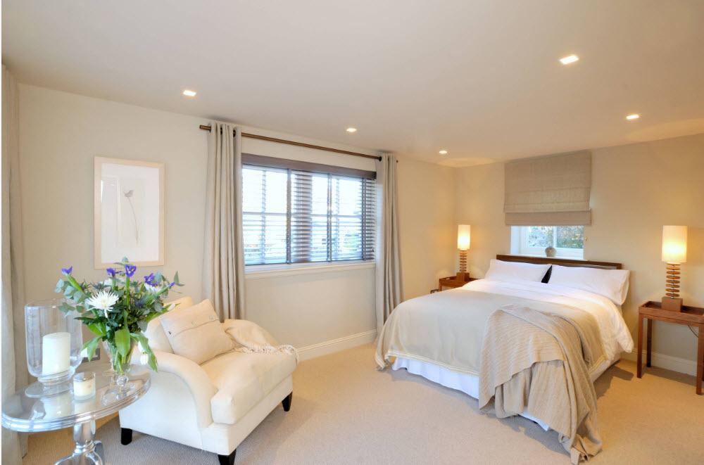 Si la décoration du plafond, des murs, du rembourrage des meubles est réalisée dans une plage de lumière monochromatique, c’est alors sur la fenêtre que l’accent doit être mis. Le motif volumétrique sur les rideaux plus sombres attirera sûrement l'œil.