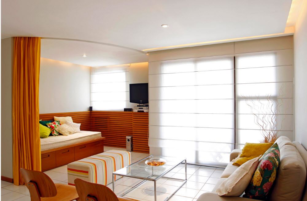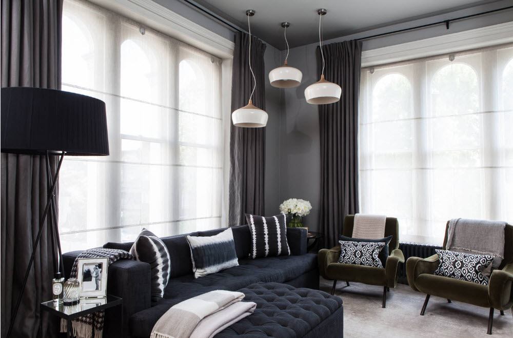 De nombreux concepteurs se félicitent de l'entrée libre de la lumière naturelle dans la pièce et préfèrent ne pas couvrir les ouvertures des fenêtres avec des rideaux. Mais une telle solution n'est pas acceptable pour tout le monde, car la salle peut être située sur le côté ensoleillé du bâtiment, au rez-de-chaussée, etc.