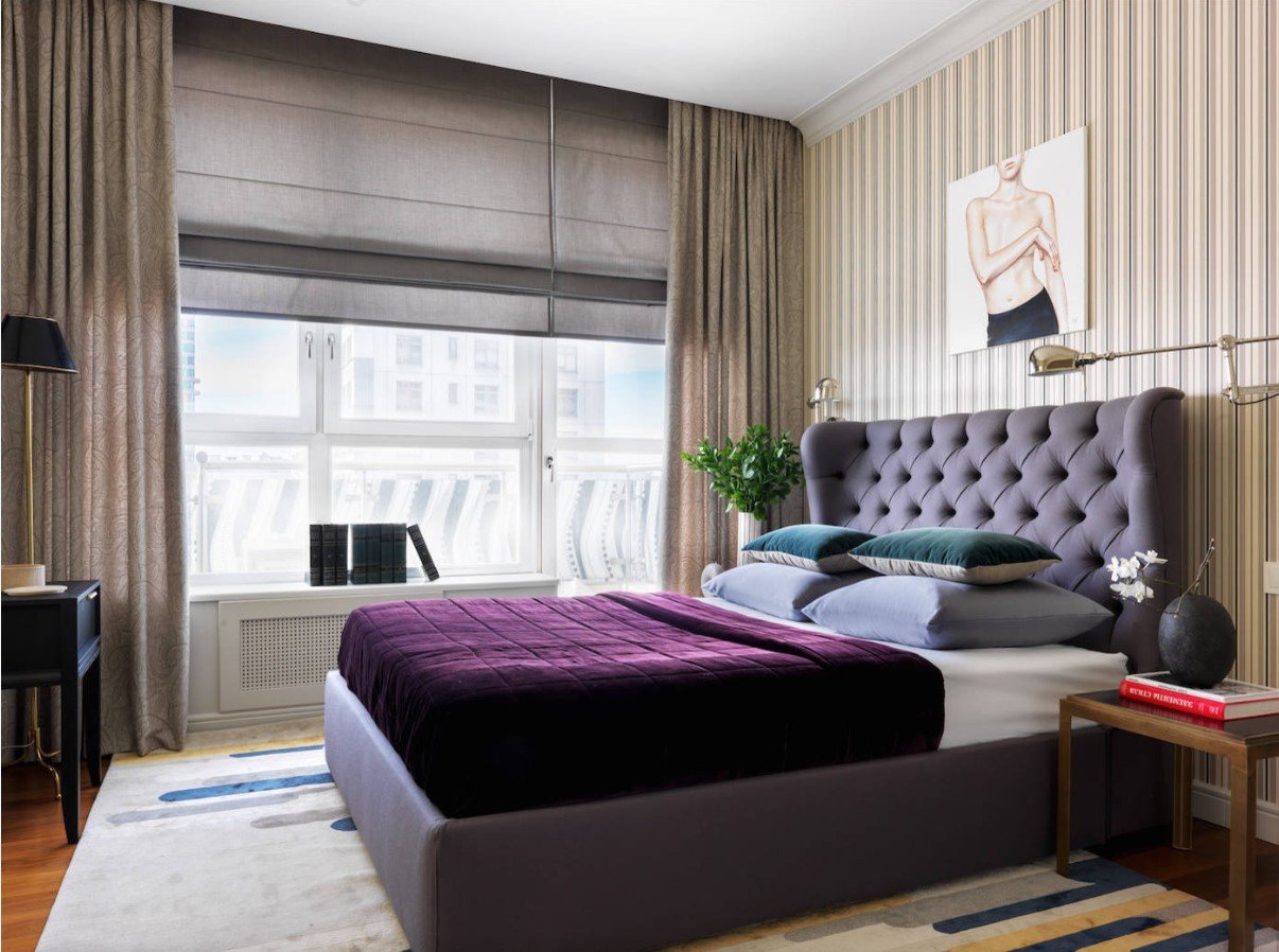 Les rideaux romains peuvent être choisis en toute sécurité pour les chambres à coucher avec une petite fenêtre. À travers la feuille laminée, les rayons du soleil ne pourront pas pénétrer dans la chambre à coucher et les rideaux préserveront le mystère de la solution intérieure créée.