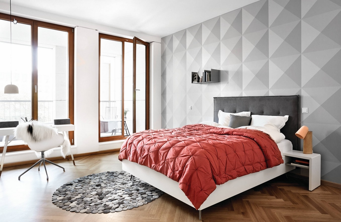 Les papiers peints non tissés et en vinyle conviennent parfaitement à une chambre ensoleillée. Ils sont plus solides que ceux en papier, cachent certaines inégalités des murs et sont faciles à coller.