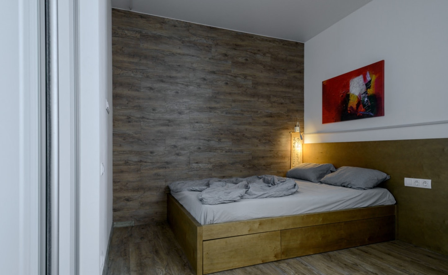 Récemment, un stratifié est souvent utilisé sur les murs d'une chambre à coucher. La texture de l'arbre rend la pièce plus attrayante. Un tel matériau est facile à installer et offre une plus grande durabilité par rapport aux autres revêtements.