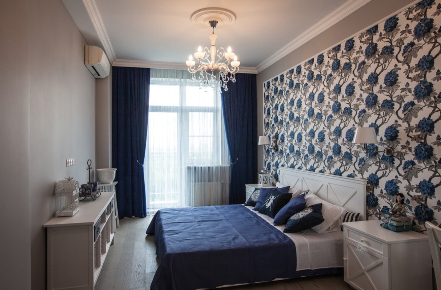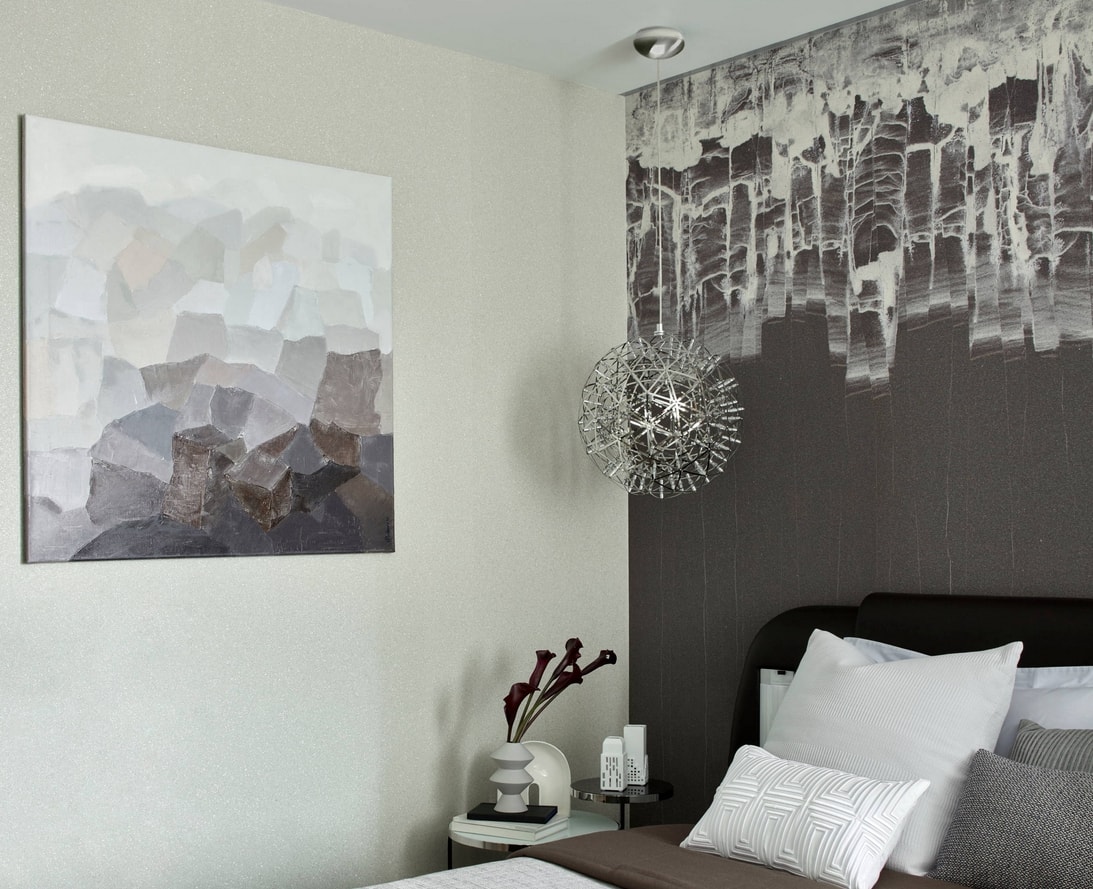 Les murs de la chambre à coucher doivent être finis avec des matériaux écologiques - plâtre, stratifié, tissu, papier peint, peinture.