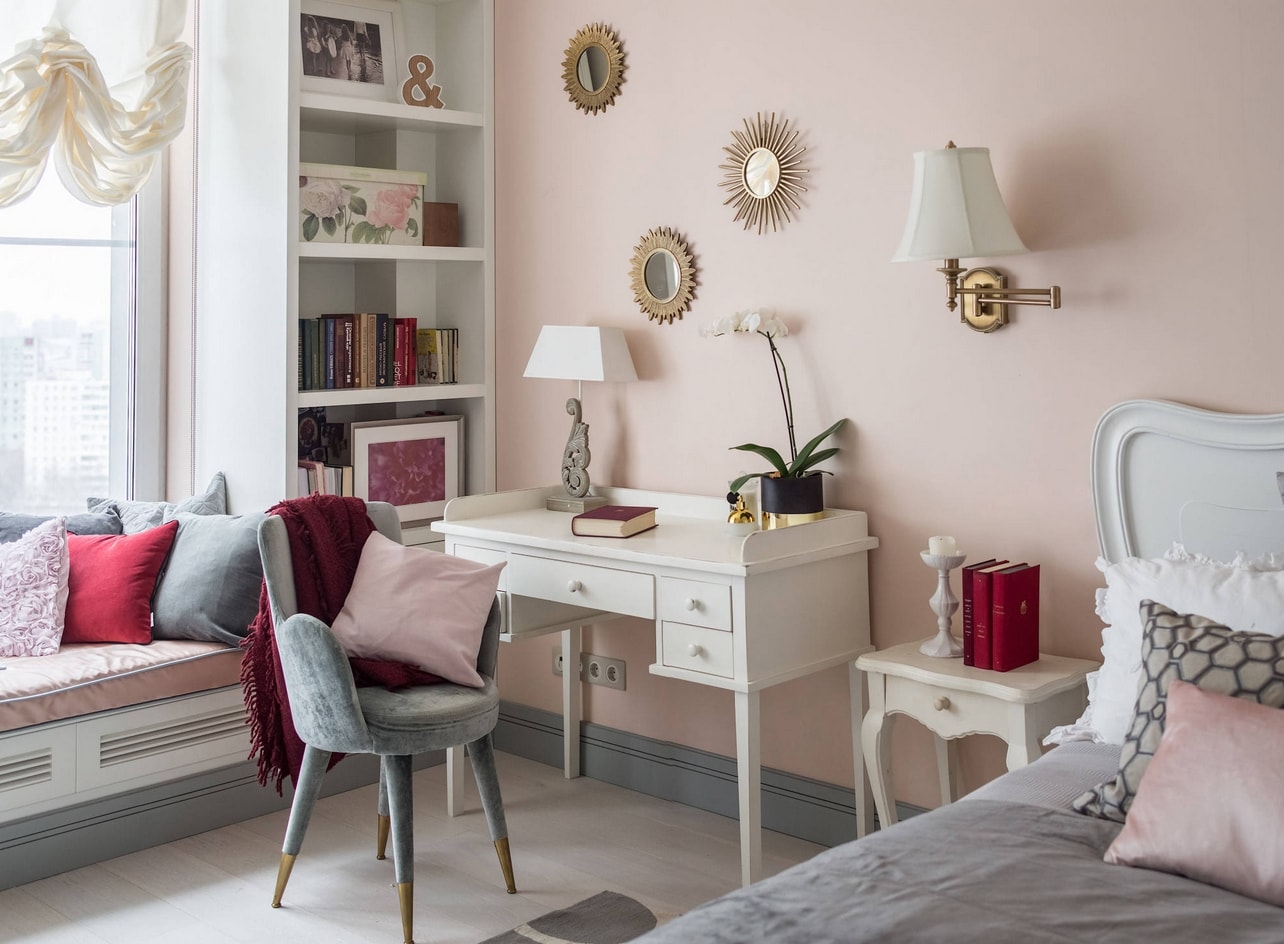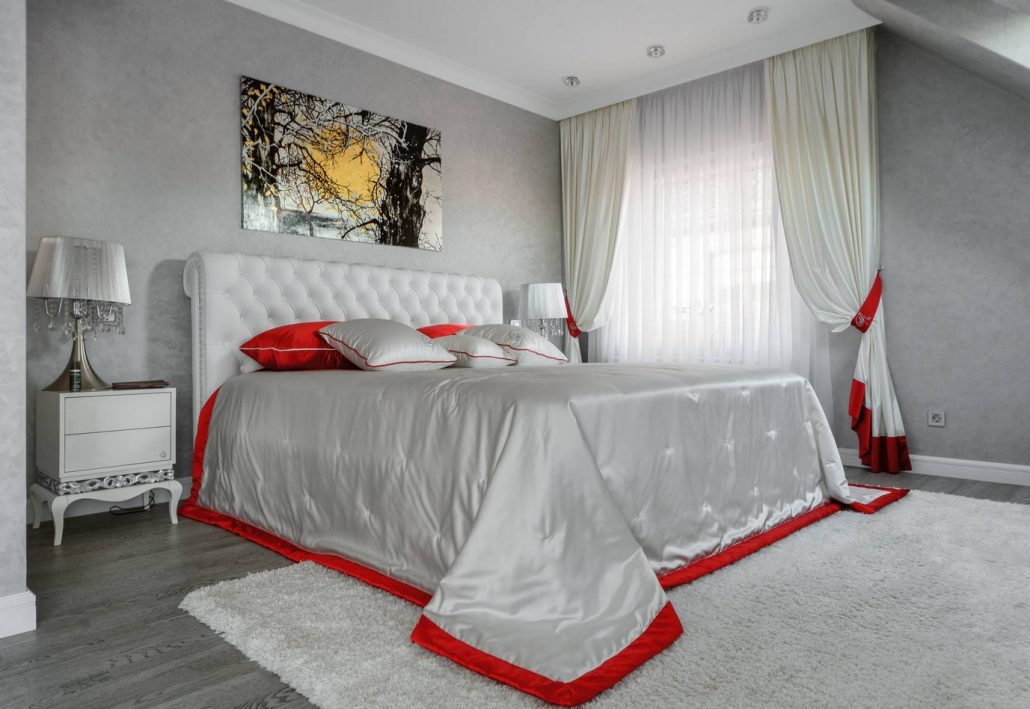La surface à peindre doit être parfaitement plane. Par conséquent, ce n’est pas l’option de finition la moins chère, malgré la facilité de la peinture. La palette de couleurs est énorme. Pour décorer les murs, des peintures au silicate, au silicone, au latex et à l’acrylique sont utilisées. Lorsque vous modifiez le design de la chambre à coucher, vous pouvez facilement changer sa teinte.