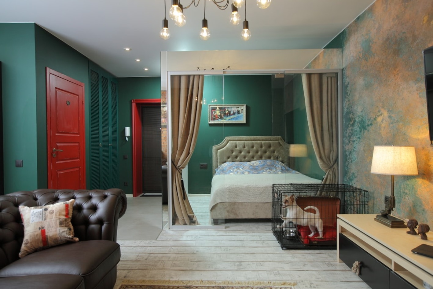À l'intérieur, la couleur est créée par les murs, les sols et les meubles. Entre eux, ils devraient se chevaucher ou se combiner. Le ton des meubles devrait être la couleur des murs.